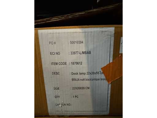 2 Teile Light & Living Schreibtischlampe Braja – Matt schwarze antike Bronze Neu in der Box