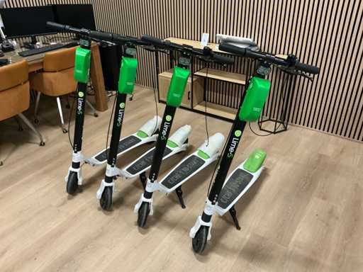 Besteht aus: 4 Teilen Lime S Roller, Lime S E-Roller, Hubraum: 150 kg, Spannung: 36 V, Frontantrieb, rutschfester Fußdeck, Nabenmotor, Geschwindigkeit: 24 km/h, Motorleistung: 250 W, Reichweite: +- 15-25 km, Ladeanschluss, Beleuchtung, Radgröße 8 Zoll.