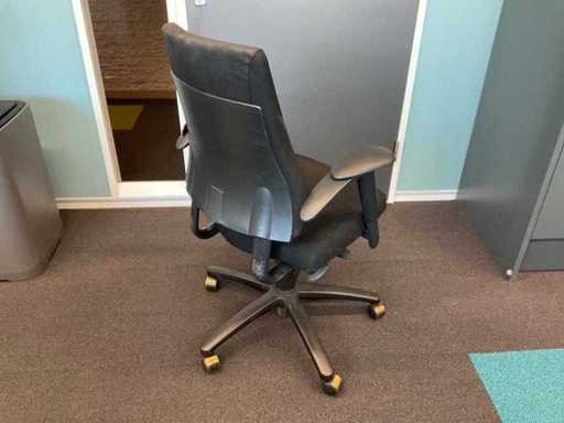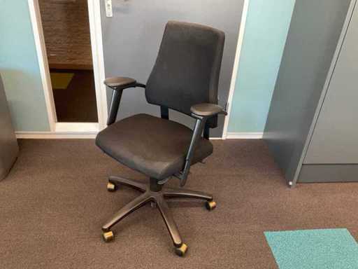 Linak-System mit eigenem Desktop, Höhe von 68 cm bis 133 cm, ausgestattet mit Heizelement unter dem Tisch. Beinhaltet eine Schublade und einen Bürostuhl.