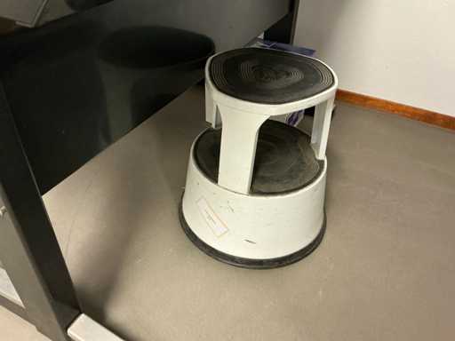 Beinhaltet Arbeitstisch 120x80 cm, Bürostuhl, Schubladeneinheit und Elefantenfuß.