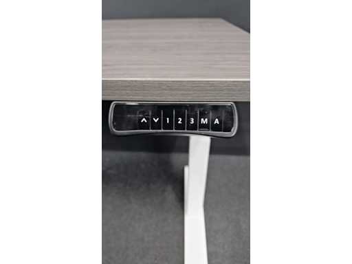 Loctek Motion ET223 Sockel in Metallfarbe Weiß, maximal. Tragfähigkeit 125 kg, 3-Phasen, 2 Motoren, Höhenverstellung von 580 - 1230 mm mit Sicherung, Decke in Melaminfarbe Logan Oak, elektronische Steuerung mit Höhenanzeige und Speicher, neu, montiert!