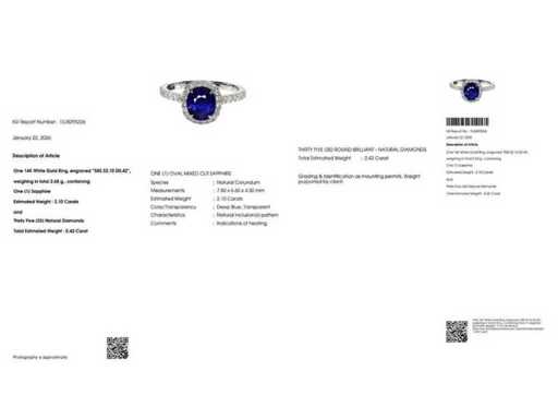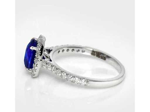 Luxusring aus Natural Intense Deep Blue Saphire 2,52 Karat in 14k Weißgold, Gesamtgewicht 2,65 gr. mit ovaler Form Natural Intense Deep Blue Saphir 2,10 Karat und 35 runden Glanzdiamanten von 0,42 Karat. Zertifiziert von IGI Labaratoire, einem der weltweit größten unabhängigen Edelstein-Zertifizierungs- und Bewertungsinstitute. Weitere Informationen finden Sie im Zertifikat. Der Schmuck ist in Wirklichkeit besser als die Fotos. Einzelhandelspreis: 11.950 €.