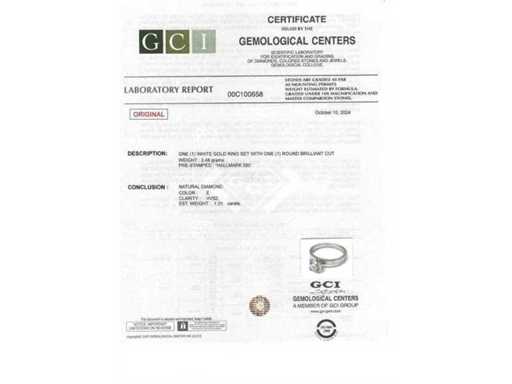 Luxus-Solitär-Ring aus Naturdiamant 1,01 Karat in 14k Weißgold, Gesamtgewicht 3,46 gr. Der zentrale Stein ist ein natürlicher Diamant in rundem Brillant. Es hat TOP der Farbe und Reinheit E/VVS2 von 1,01 Karat.. Zertifiziert vom GCI Laboratoire, einem der größten internationalen Institute für die Zertifizierung und Bewertung von Diamanten und Edelsteinen. Weitere Informationen finden Sie im Zertifikat. Schmuck ist in Wirklichkeit besser als Fotos. Geschätzter Preis des Händlers: 21.850.-