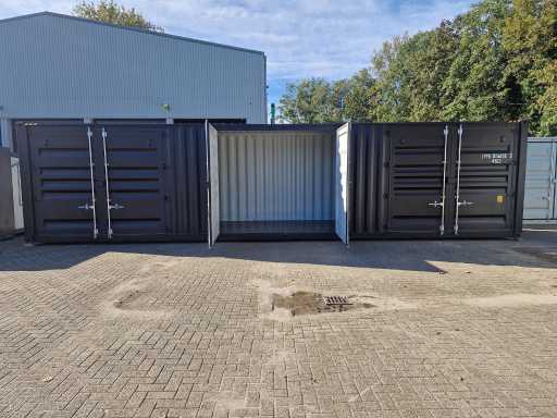 Ausgestattet mit 3 Seitentüren (3 Meter) und 1 Endtür, Schlosskästen, geeignet für den Seetransport, RAL9005, maximale Tragfähigkeit 24 Tonnen unbenutzt