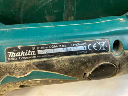 - DGA452 Winkelschleifer Ø115mm, mit 1x 18V Batterie und Ladegerät, S/n 55481Y