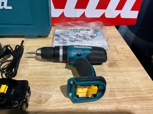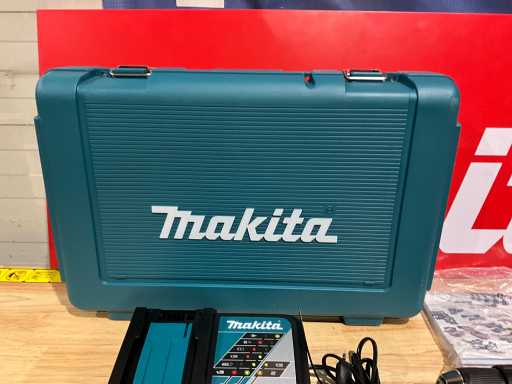 Set bestehend aus Makita DHP453 Schlagbohrmaschine/Schraubendreher; 1x Makita LXT 18V 3,0 Ah Akku; Makita DC18RC Schnellladestation; Makita Werkzeugsatz; unbenutzt im Makita Aufbewahrungskoffer