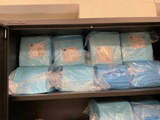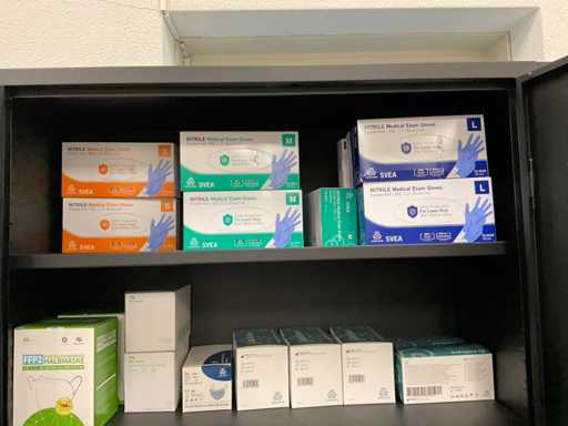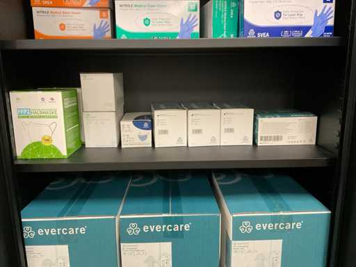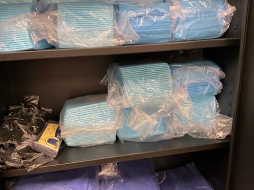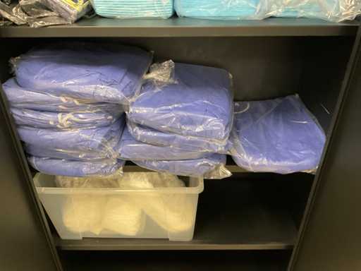 Der Inhalt besteht aus Einweghandschuhen, Unterwäsche, Haarnetzen und Unterlagen.
