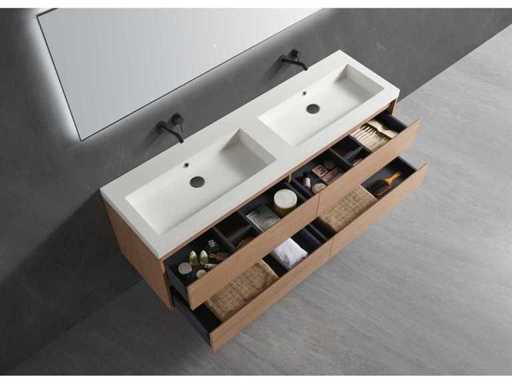 Wahl zwischen einem weißen oder mattschwarzen Acryl-Tablett (bitte die Farbwahl am Sammeltag weitergeben), 5-lagiges Sperrholzmaterial (sehr stark und feuchtigkeitsbeständig), Wasserhähne nicht enthalten, Schubladen mit 4 Teilen mit weichem Verschluss, Acrylspüle, kommt mit Spiegelmodell Iris mit Heizung, Uhr und Lupe sowie LED-Beleuchtung rundherum vorne und 3 verstellbaren LED-LED-LEDs 3000/4500/6000K (gelb/blau/weißes Licht) mit folgenden Optionen: digitales Display, integrierter Vergrößerungsspiegel mit 10 cm Durchmesser und LED-Beleuchtung (vergrößert 3-fach), Digitaluhr, digitale Temperaturanzeige, 220-Volt-Stecker (Plug and Play), Heizung zur Verhinderung von Kondensation, 1,5 mm kupferfrei mit explosionssicherer Schicht und derselben Funktion wie gehärtetes Glas, exklusive Abflüsse, Zustand: Neu in der Verpackung, Sonderausstattung: 2 Jahre Garantie, Waschbecken mit und ohne Wasserhahnöffnungen möglich, Auswahl bitte auch am Abholtag angeben). Komplett mit Installationsmaterial, sehr hoher Qualität. Bitte beachten Sie: Bei Bedarf kann auch ein anderer Spiegel gewählt werden.