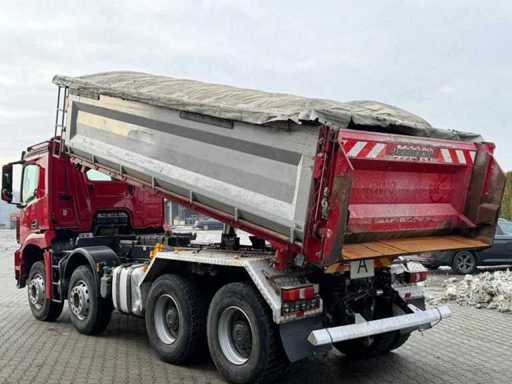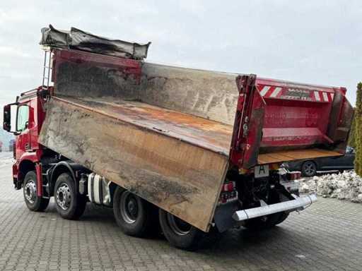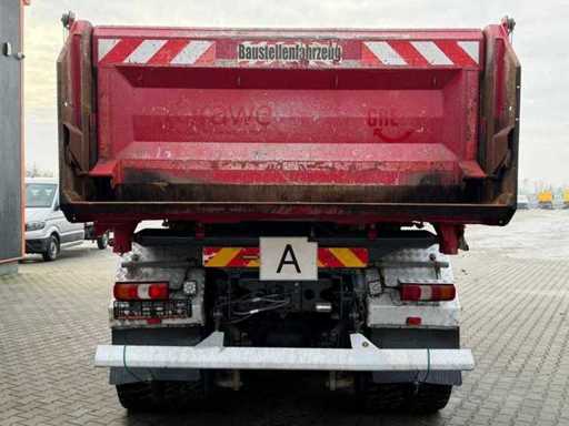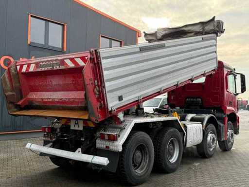 Mercedes-Benz Arocs 3243 8x4 Kipper mit Schwarzmüller-Karosserie und Bordmatik Heckklappe.