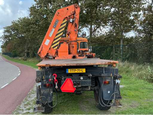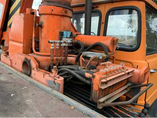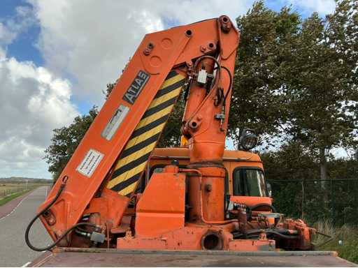 Ausgestattet mit: Atlas AK3006 ausklappbarer hydraulischer Ladekran inklusive Schaltkasten (3300kg max. Hubgewicht. Max. Reichweite ca. 10 Meter), 4 Abstützungen (manuell ausfahrbar, hydraulisch hoch und runter) inkl. Schaltkasten, Frontzapfwelle, Heckbacke, Rundumleuchte, Arbeitsscheinwerfer, Continental 12.5 R20 Reifen, Dokumentation, diverse Werkstatthandbücher. Gesamtmaße: 430 cm Länge x 230 cm Breite x 345 cm Höhe. Maße Ladefläche: 150 cm Länge x 200 cm Breite.