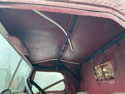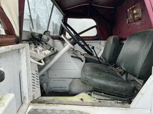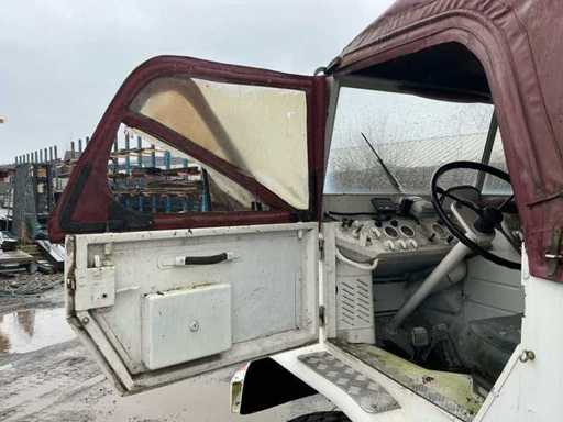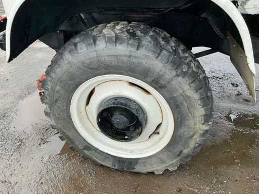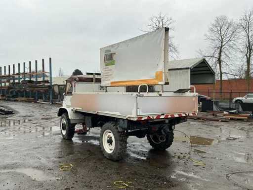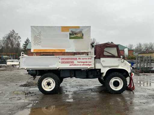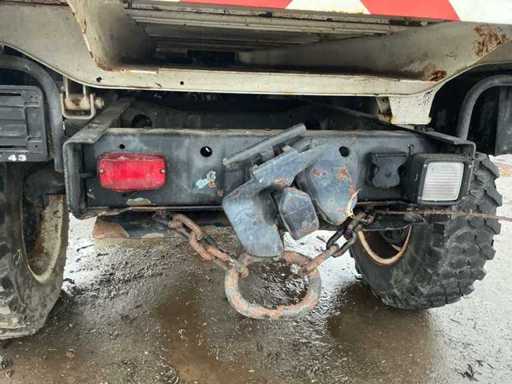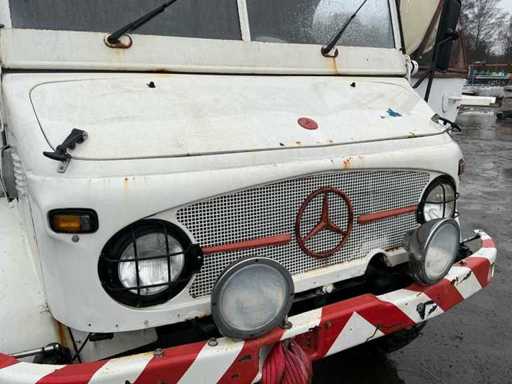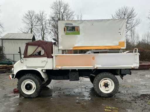 Mercedes-Benz Unimog im originalen, gebrauchten Zustand. Dieses ikonische Geländefahrzeug ist bekannt für seine außergewöhnlichen Offroad-Fähigkeiten, seine robuste Bauweise und seine Vielseitigkeit. Allgemeine Informationen: Marke: Mercedes-Benz. Modell: Unimog. Typ: Nutzfahrzeug / Geländefahrzeug. Antrieb: 4x4. Getriebe: Schaltschaltgetriebe mit niedriger Übersetzung (sichtbar auf der Flush-Platte). Kilometerstand: ca. 90.781 km (Kilometerzählerstand). Design & Ausstattung: Offene Ladebox mit Karosserie- und Werbepaneelen (abnehmbar). Niedrige Übersetzung, Differenzialsteuerung und Frontantrieb können von der Kabine aus betrieben werden. Große Geländereifen. Klassische Unimog-Kabine mit Canvas-Dach. Mechanisches Armaturenbrett mit originalen Anzeigen und Schaltern. Robuste vordere Stoßstange mit zusätzlicher Beleuchtung. Zustand: Das Fahrzeug befindet sich in benutztem und nicht restauriertem Zustand. Rost, Abnutzungsspuren und Patina treten auf (siehe Fotos). Das Canvas-Führerhaus zeigt Abnutzung und Verfärbungen. Das Innere ist komplett, aber benutzt. Technischer Zustand: Starts, Fahren und Bremsen.
