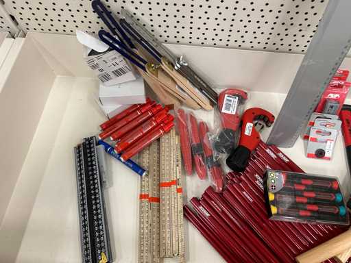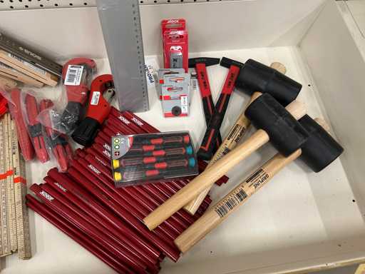 Bestehend aus Bleistiften, Klappreihen, Gummischlägeln usw