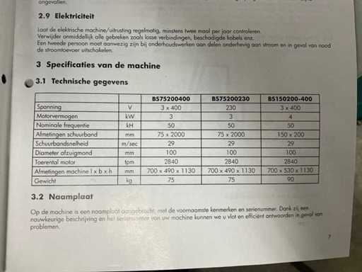 Schleifbandgröße: 150x200mm, Schleifgeschwindigkeit: 29 m/s