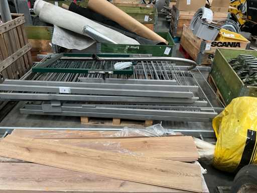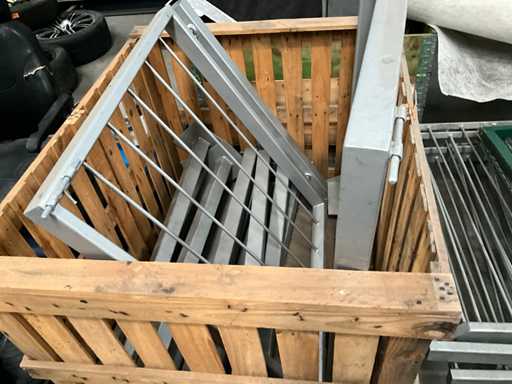 Bestehend aus etwa 5x Galva-Zaun in der Größe 200x110 cm, + im Palettenkasten-Grundstück + Tür + Kabelkanal