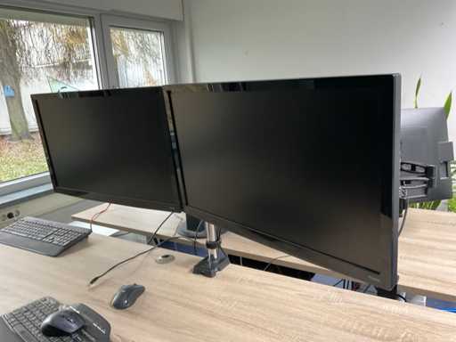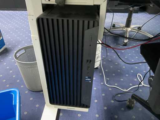 Bestehend aus: (1×) elektrisch höhenverstellbarer Schreibtisch (180x80 cm) (1×) Mobiler Bürostuhl (1×) Mobiler Schubladeblock mit Inhalt. (1×) Desktop-PC mit Intel i5 Prozessor, GHz (2×) Iiyama-Monitore, 27 Zoll Müll