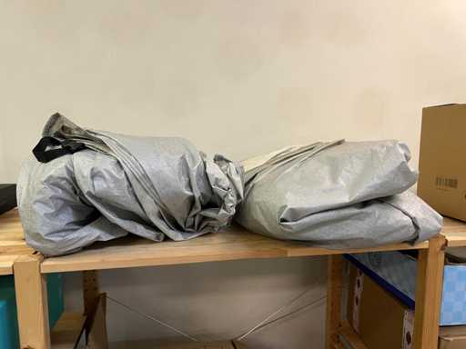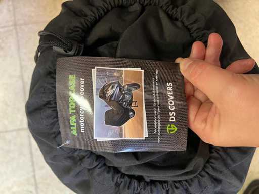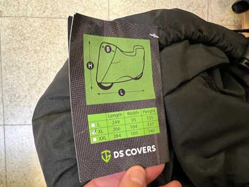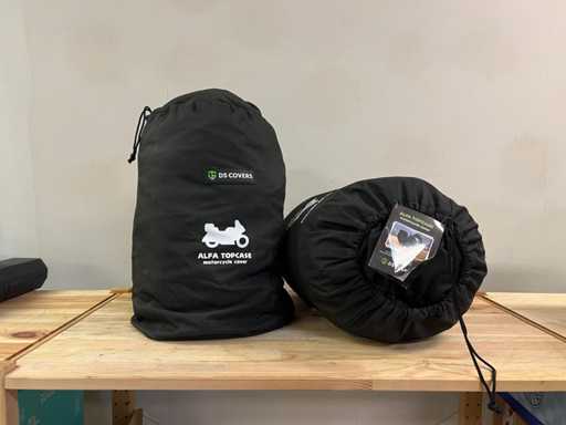 Set mit 2 Motorradabdeckungen der Marke DS Covers, Typ Alfa Topcase in der Größe XXL (284 x 105 x 140 cm). Ergänzt mit 2 weiteren Motorradabdeckungen (ohne Markenzeichen).