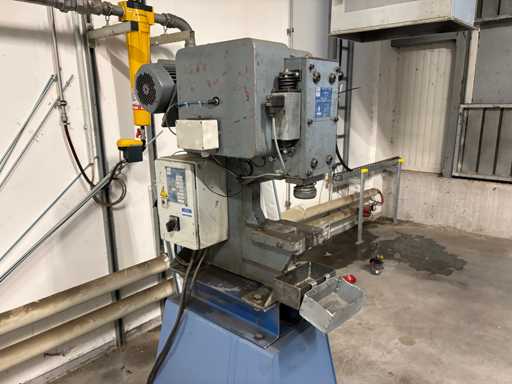 Maschinen-Nr. 41611, elektrisch, Tischfläche ca. 165 x 170 mm, Einbauhöhe ca. 100 mm (Der Artikel ist im Zustand wie vorhanden und ungeprüft. Der Artikel wird ab Fundament und ohne Inhalt /Material verkauft! Für die Demontage und Verladung des Artikels sind keine Paletten vorhanden, weiteres Verpackungsmittel vor Ort und der Käufer muss bei Bedarf auf eigene Kosten einen Stapler, Panzerrollen, Maschinenheber usw. mieten!)