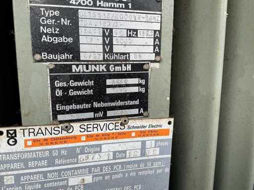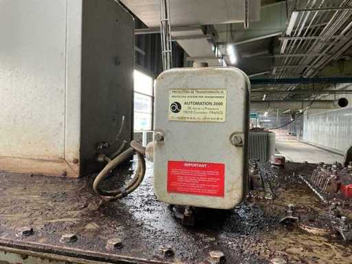 3 × 415 V, 6000 A, Ölgewicht: 2750 kg, Automation 2000 Transformatorschutz, 2002 überholt, mit Rädern