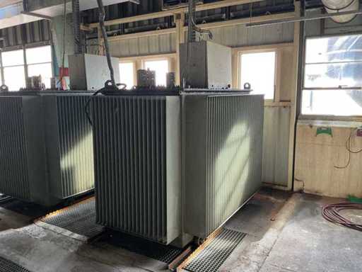 3 × 415 V, 6000 A, Ölgewicht: 2750 kg, Automation 2000 Transformatorschutz, 2002 überholt, mit Rädern