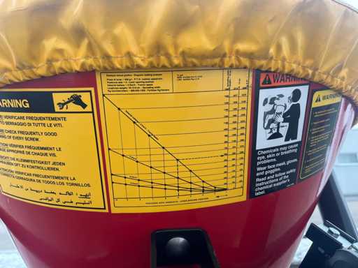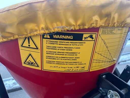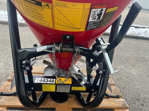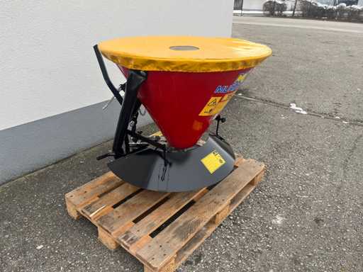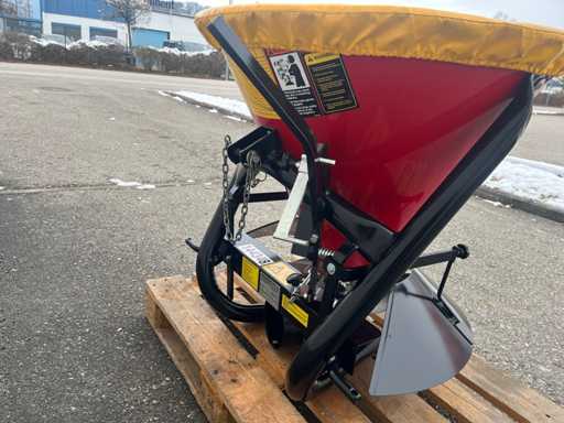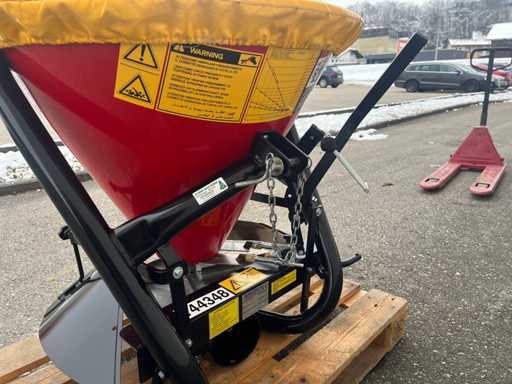 Düngerstreuer mit kegelförmigem Stahltrichter und Streuscheibe zum verstreuen von Dünger (als Granulat oder Pulver). Durch einem entsprechenden Zubehör kann man mit diesem landwirtschaftlichen Gerät auch Salz oder Sand auf verschneiten oder vereisten Straßen streuen. Für Traktoren bis 50 PS geeignet.