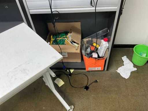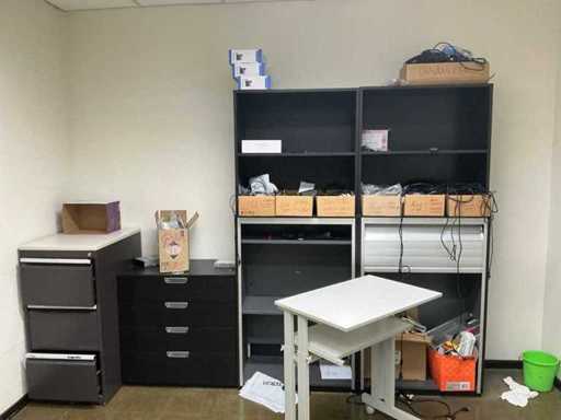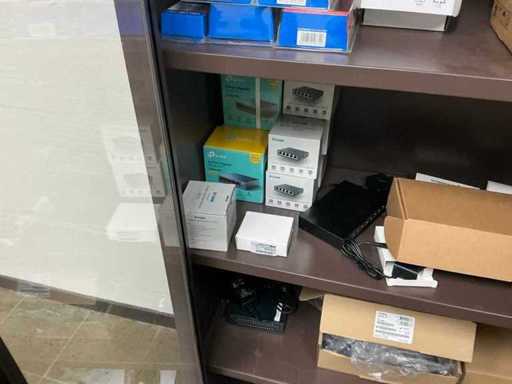Verschiedene IT-Teile, Telefone, Schränke, Kabel, komplettes Zimmer.