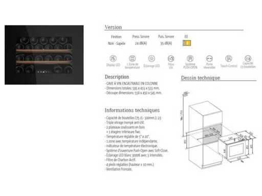 - Cave à vin Frecan neuf, encastrable, capacité de 23 bouteilles, 595 x 455 x 555 mm