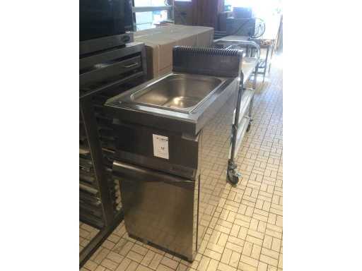Ausgestattet mit Gastronorm-Tablett für Pommes frites in der Oberfläche; zu Fuß; mit Tür;