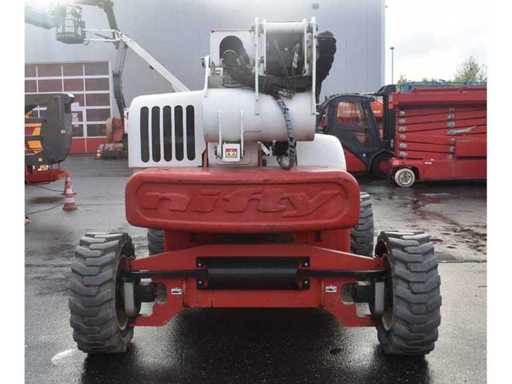 Interne Nr. 69346, Drehbarer Arbeitskorb 100°, Korbarm/vertikaler Drehwinkel 150°, Allradantrieb, Differentialsperre, Pendelachse, weiße Bereifung, integrierter Rußfilter.