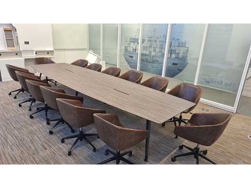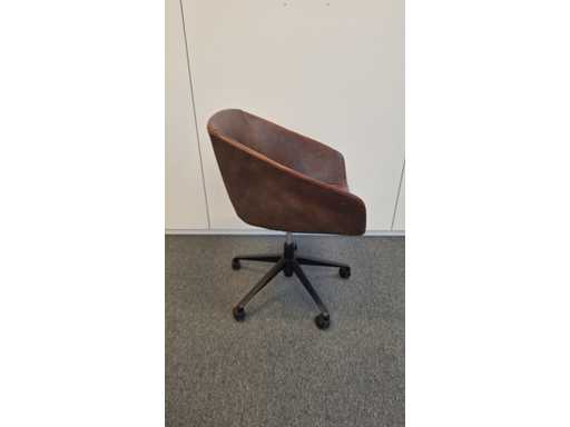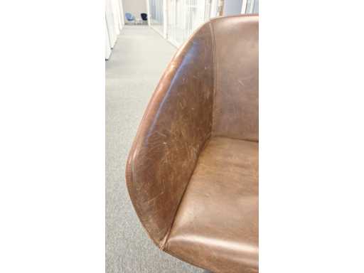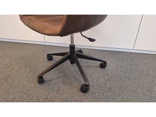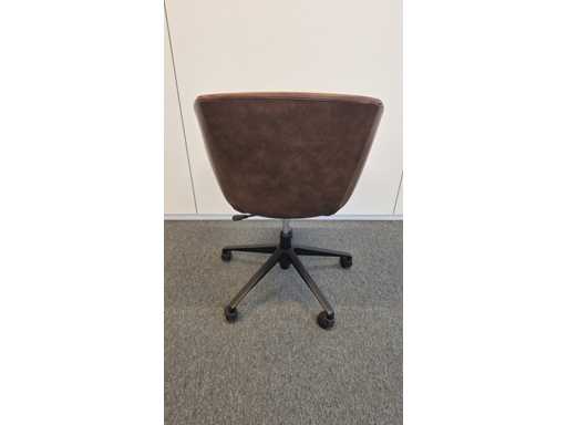 Italienisches Design, Querunterlage in Aluminiumfarbe Schwarz, ausgestattet mit serienmäßigen Schwenkrädern, höhenverstellbar, Polsterung in Lederfarbe Braun, repräsentativer Luxus-Konferenzstuhl in wunderschönem Vintage-Zustand