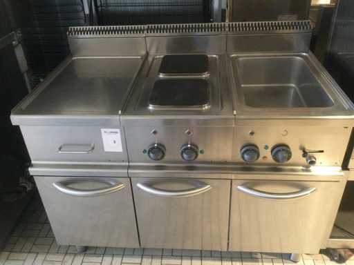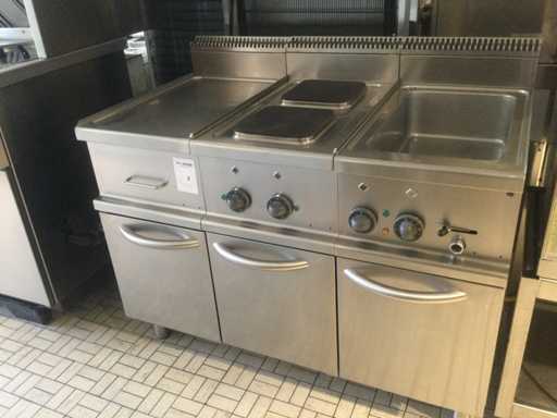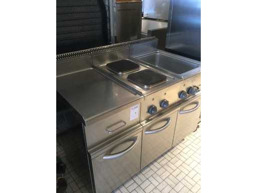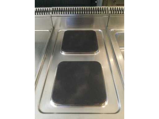 neutrale Zone mit 2 Kochplatten und Wasserbad, auf einem Sockel