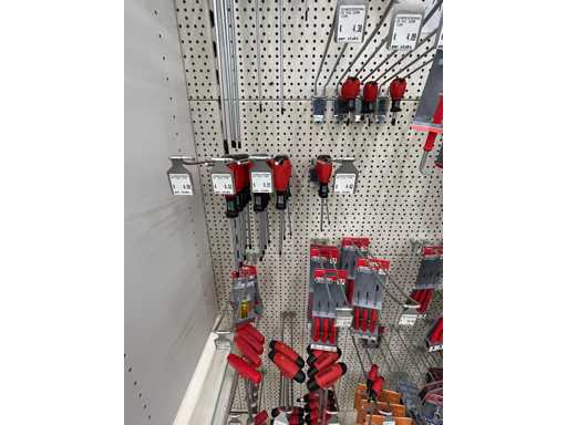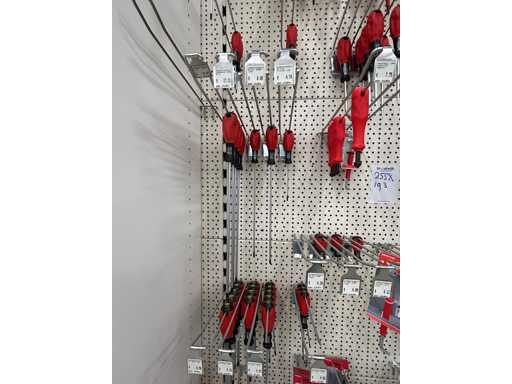 Bestehend aus Schraubendrehern, Ringschlüsseln, Schlagschülsen und Inbusschlüsseln
