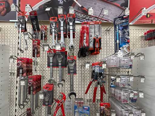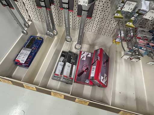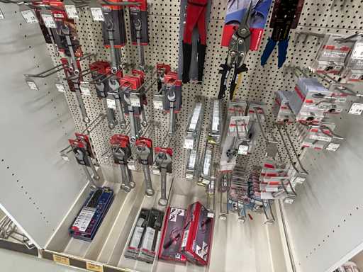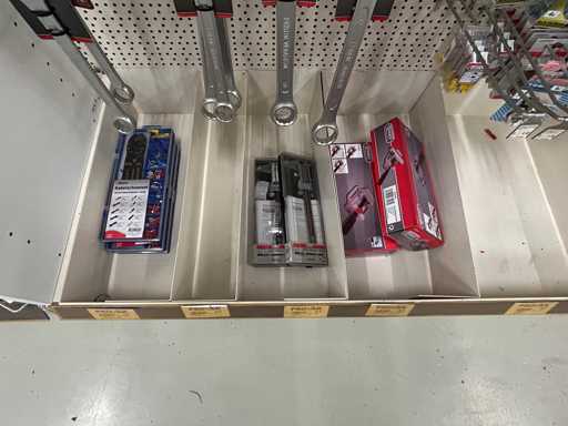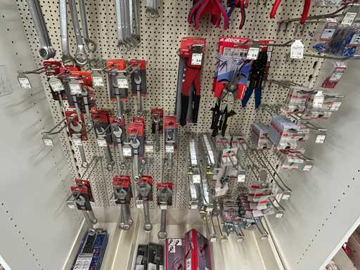 Bestehend aus unter anderem offenen Schraubenschlüsseln, Ringschlüsseln, Nietzangen, Zangen, Deltafix und Kabelachsen.