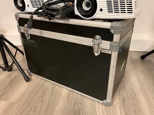 Ausgestattet mit insgesamt 2 Fernbedienungen; Stromkabel; 1 Flightcase; 1 Projektionstisch mit Laptophalterungen und 2 Ersatzlampen, 600 Stunden und 591 Stunden