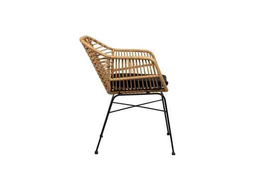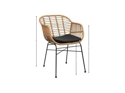 Der Stuhl hat einen stabilen Stahlrahmen, kombiniert mit einem starken Kunststoffdraht im warmen Farbton Natur. Das sorgt für ein modernes Aussehen und eine lange Lebenserwartung.