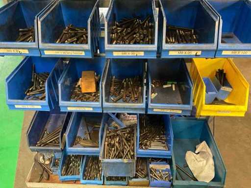 Der Inhalt ist enthalten, darunter: verschiedene Sechskantbolzen und Bohrer.