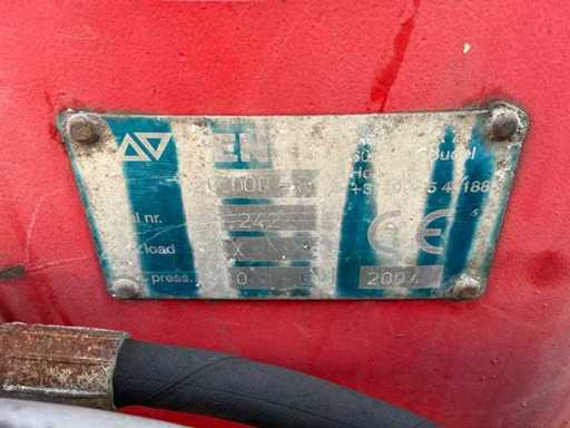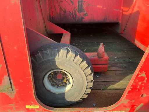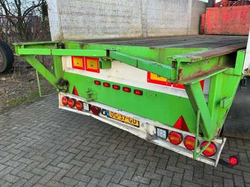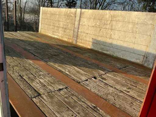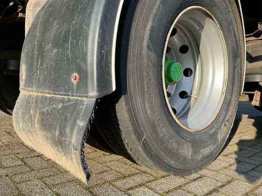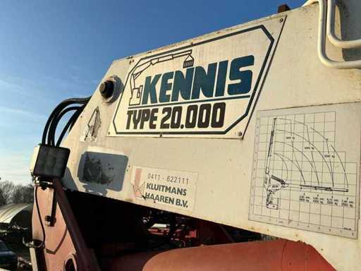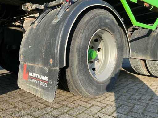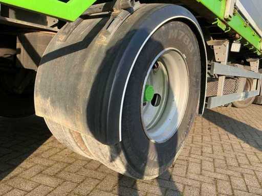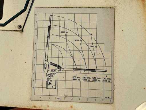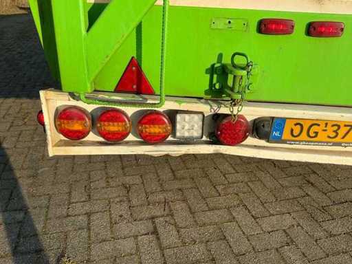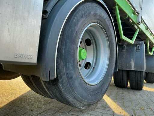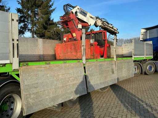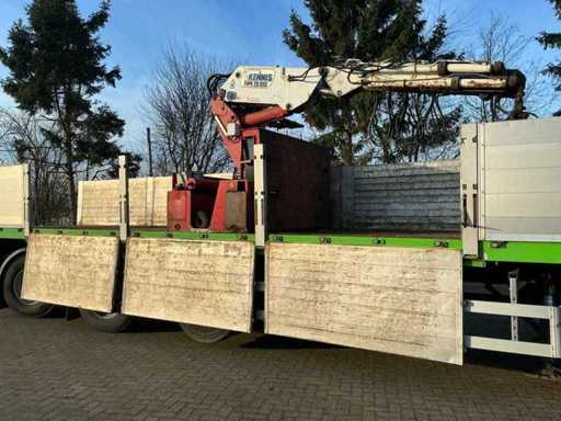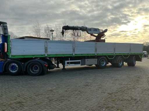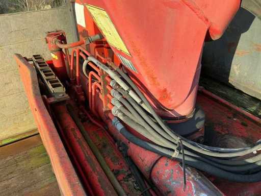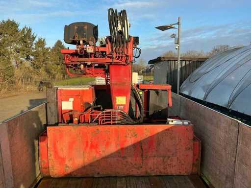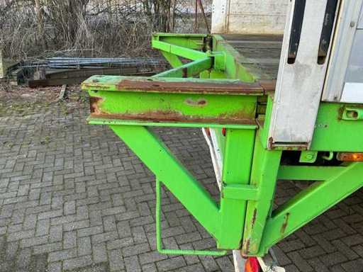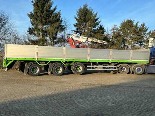 Ausgestattet mit: 2 gelenkten Hinterachsen, Arbeitsbeleuchtung, Wissenskran (Typ 20.000, 2004, mit Rotator, 3x ausziehbar, integrierte Stützbeine, mobil, Stundenposition: 5538h), Edelstahlabstellraum, Hubachse, Aluminiumklappen, klappbare Plattform hinten für den Kran (Verlängerungsanhänger)