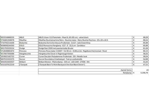 Dabei handelt es sich um eine Charge von A-Marken-Retouren eines großen Online-Händlers. Die Charge besteht aus verschiedenen Produktkategorien. Anzahl der Teile: 43. Verkaufswert: €5257,- Ungeprüft: Vorgang unbekannt (Mix aus