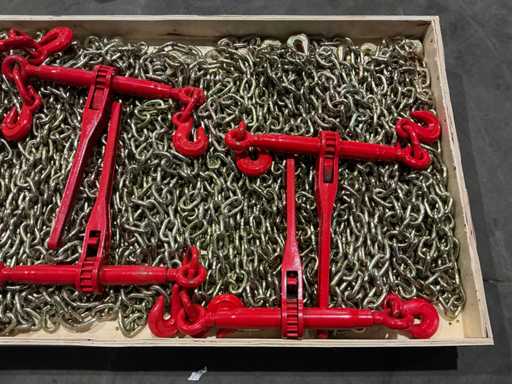 Palette mit 5x Ratschenspanner und 10x Förderbandkette (2,45 Tonnen)