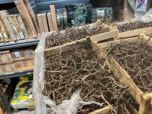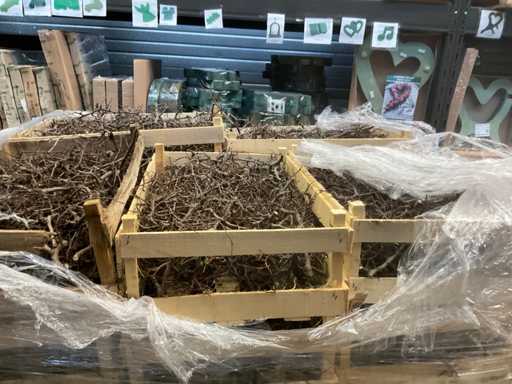 Palette mit dekorativen Zweigen in Kisten
