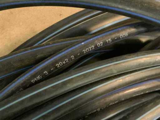 darunter: PE 40, 20x2,2, Uponor flexibles Rohr, 32 x 3 mm. Einschließlich Paletten