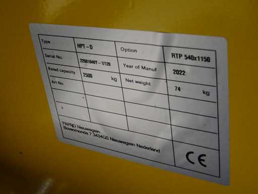 Er is geen herroepingsrecht. Zie de Veilingvoorwaarden voor meer informatie. De minimumleeftijd voor het bezoeken van de ophaaldag is 18 jaar. Bezoekers moeten zich kunnen identificeren. Tijdens de ophaaldag is er geen, door Troostwijk georganiseerde, vorkheftruck beschikbaar.