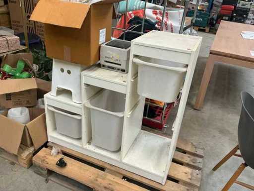 einschließlich Werkstattregal, Körbe, Schalensitz, Etikettendrucker....