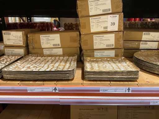 Batch verschiedener Modelle/Farben von Metallschalen. Besteht aus dem mittleren und unteren Regalinhalt eines Regalabschnitts