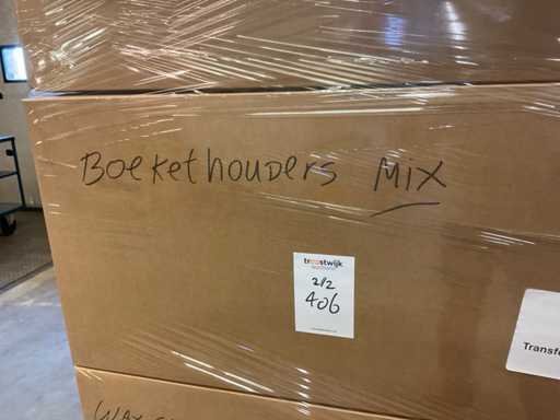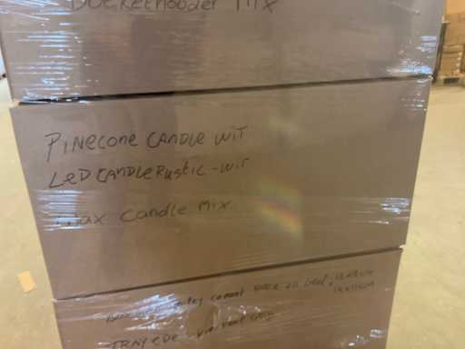 Bestehend aus 1 Palette inkl. Blumenstraußhalter, Wachskerzenmischung, Teelichtern, Lampen, Blumentopf etc.