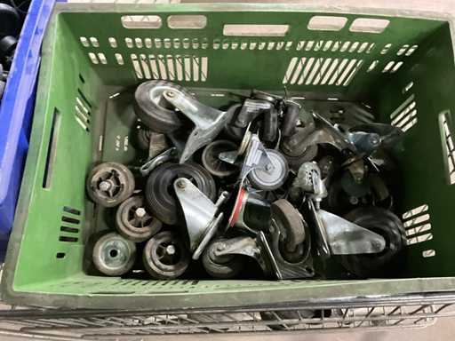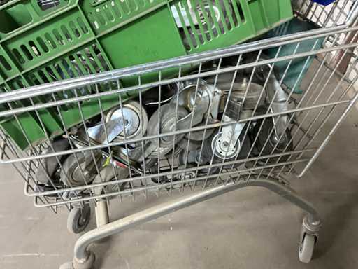 Bestehend aus Bürostuhlrädern, Kunststoff- und Gummirädern, sowohl fest als auch drehbar, einschließlich Einkaufswagen