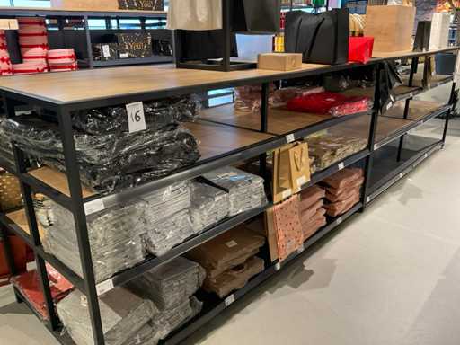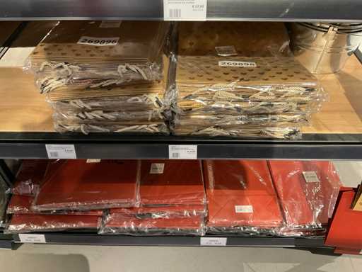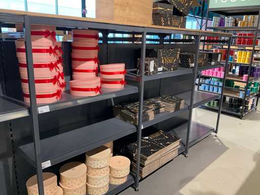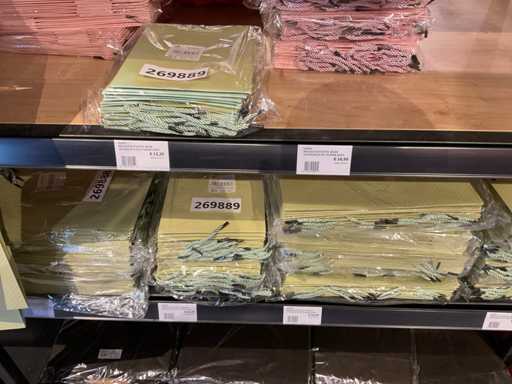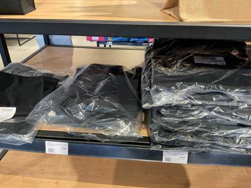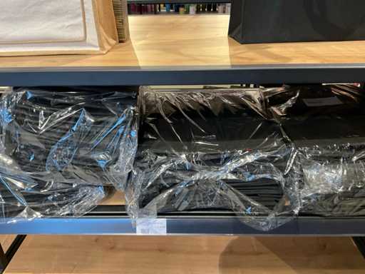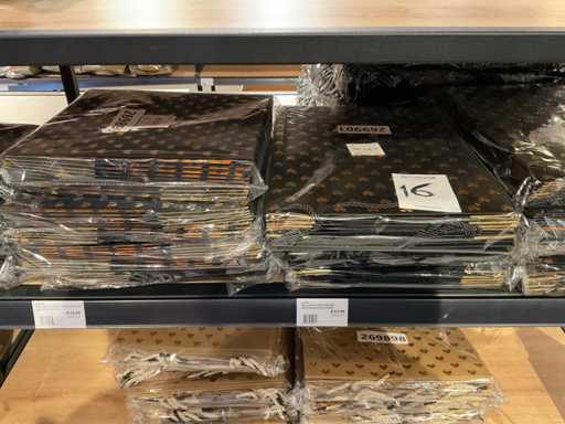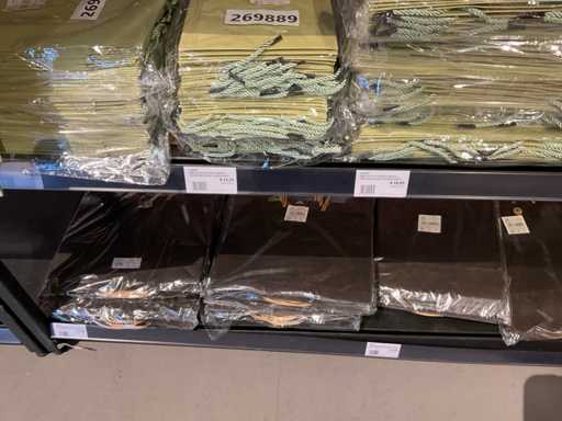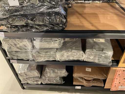 Inhalt von 2 Regalseiten, bestehend aus Kunststoff-, Filz- und Kartontragetaschen, ausgenommen Regale.