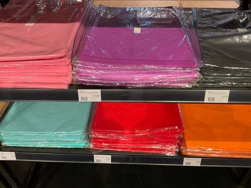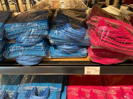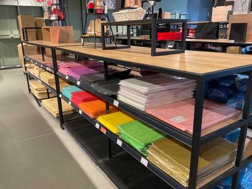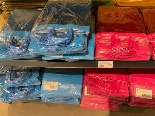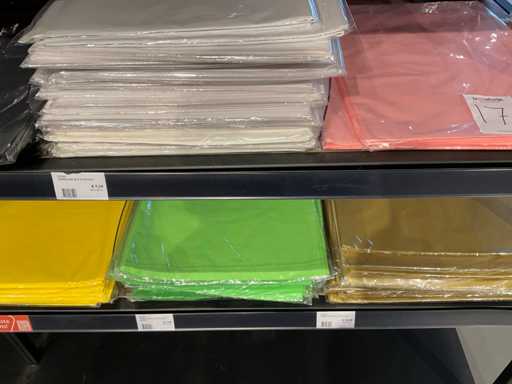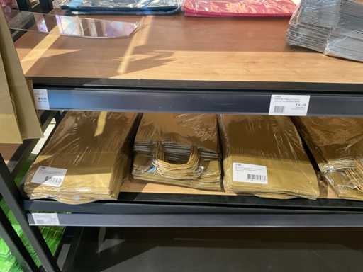 Inhalt von 2 Regalseiten, bestehend aus Kartontragetaschen und Seidenpapier, ausgenommen Regale.