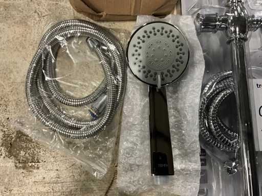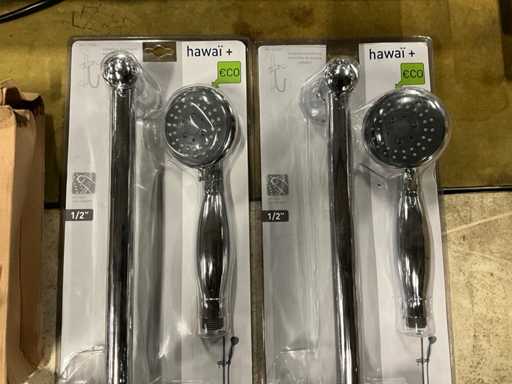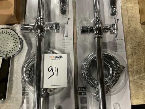Dazu gehören ein komplettes Duschset aus zwei Teilen und ein einteiliger Handduschkopf mit Zubehör.