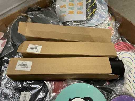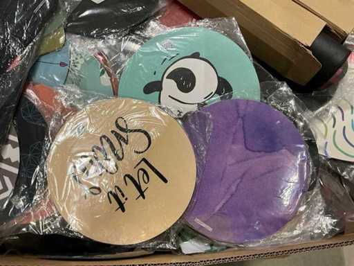 Dabei handelt es sich um eine Charge zurückgegebener Waren von einem großen Online-Händler. Die Produkte bestehen aus verschiedenen Mausmatten. Unkontrolliert: Operation unbekannt (Mischung von