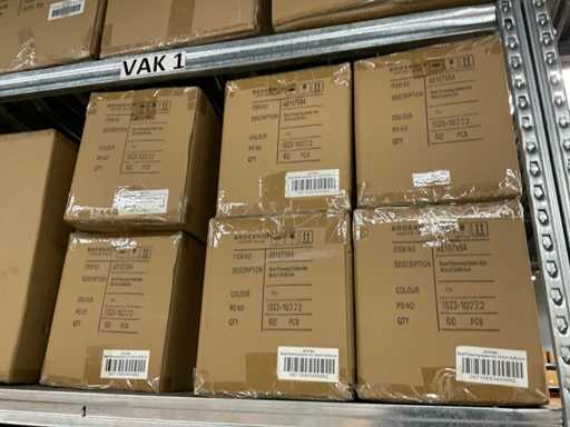 Inhalt von 1 Seite des Racks, bestehend aus Zinkeimern und Pickeln, ausgenommen Rack.